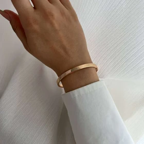 دستبند زنانه بنگل با طرح آینهای و روکش طلایی