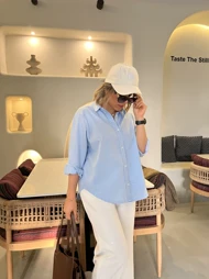 شومیز صبا رنگ آبی و سفید زنانه کد 1015