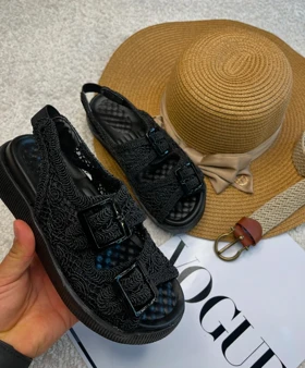 صندل زنانه مکرومه مشکی