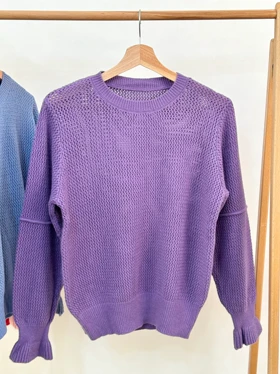 ست بافت یقه گرد و شلوار بگ طرح پایین دوخط