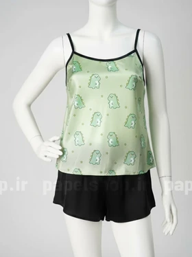 ست لباس خواب تاپ و شورتک ساتن طرح دایناسور