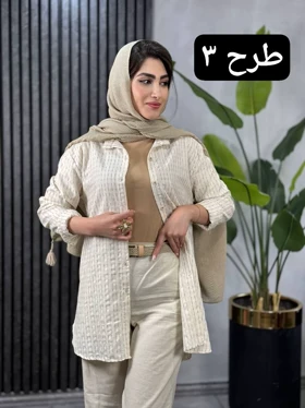 ست تونیک و شلوار لینن با نوار تزیینی سرآستین