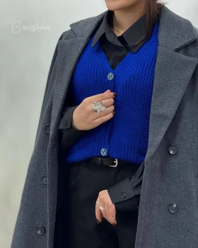 ست بافت یقه گرد و شلوار بگ طرح دورنگ