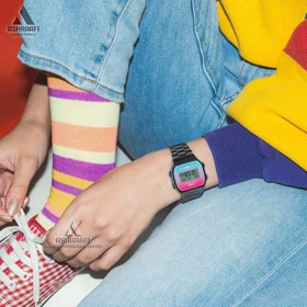 خرید اعتباری فیض واچ ساعت مچی زنانه برند بلون بند سیلیکونی مشکی با عقربه مداد رنگی 698,000 398,000 تومانءءء 43