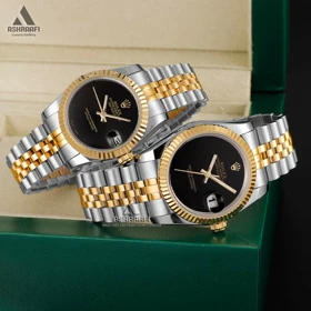 خرید اعتباری ست پرو ست ساعت رولکس دورنگ رزگلد صفحه مشکی ایندکس نگین Rolex-6113-S 9,077,000 7,897,000 تومانءءء 13