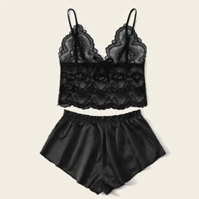 لباس خواب زنانه مدل تاپ و شلوارک ساتن گیپور