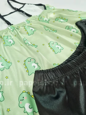ست لباس خواب تاپ و شورتک ساتن طرح دایناسور