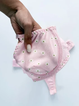 ست شورت و سوتین فنر دار کبریتی نخی صورتی گلدار