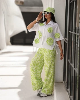 ست سه تیکه شومیزشلوار کلاه هاوین