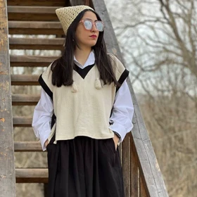 جلیقه لینن زنانه نوار دوزی شده لنا