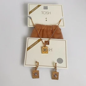 نیمست روکش طلا برند TOSH طرح خورشید و سنگ - گردنبند و گوشواره آویز