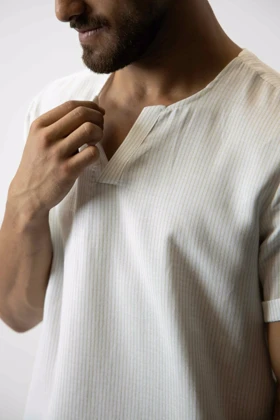 خرید اعتباری ناموجود اورجینال دیلم پیراهن لش یقه انگلیسی پارچه مراکشی فوق العاده خنک رنگ طوسی استایل اولد مانی
