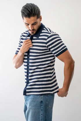 خرید اعتباری اورجینال دیلم پیراهن لینن کنفی فوقالعاده خنک و با کیفیت آبی راه راه میله ای کد 3 690,000 تومانءءء