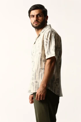 خرید اعتباری ناموجود اورجینال دیلم پیراهن کنفی قواره باکسی پارچه کنف طبیعی طرح هندسی اصیل - اتنیک مردانه