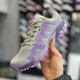 خرید اعتباری آکو اسپرت کفش راحتی آدیداس ماراتن کپسول دار طوسی بنفش با کفی ایرکول فوم 2,000,000 تومانءءء