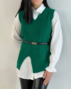 ست شومیز با وست بافت بهمراه کمربند کد 5215