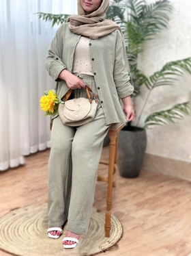 ست شومیز با وست بافت بهمراه کمربند کد 5215