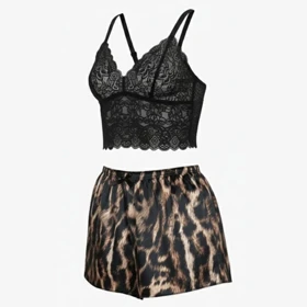 ست لباس خواب تاپ و شورتک ساتن طرح پلنگ