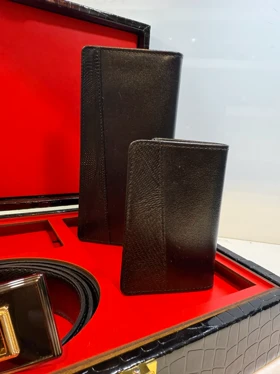 ست چهار تکه کیف پول کمربند و جاکارتی مردانه چرمی massimo dutti