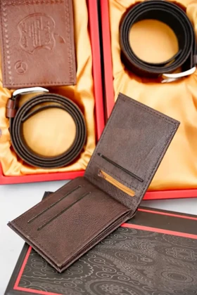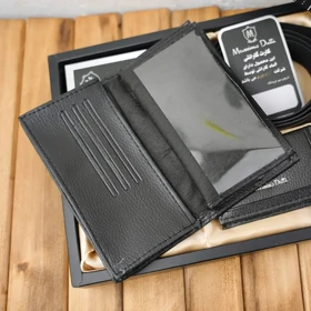 ست دو تکه کیف پول و کمربند مردانه چرمی