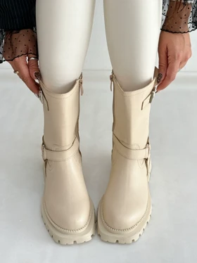 نیم بوت زنانه کاپشنی جلو زیپدار کرم کد 526