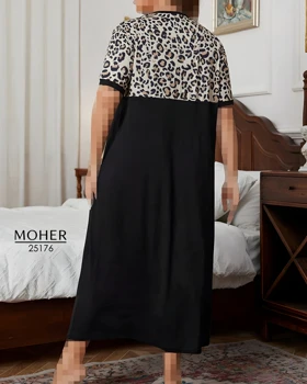 پیراهن زنانه سایز بزرگ مشکی با بالاتنه طرح پلنگی