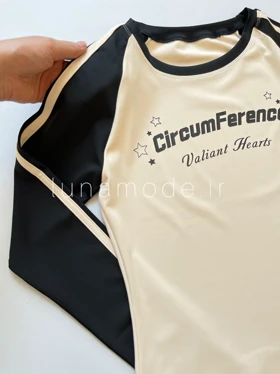 تیشرت اسپرت دو رنگ آستین بلند طرح چاپی